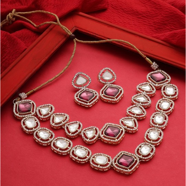 Gold-plated layered necklace, has purple stones and white austrian diamonds-studded details